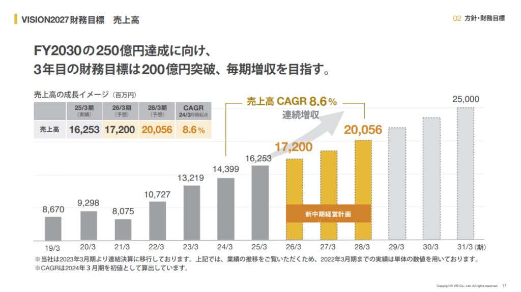 前中期経営計画の前倒し達成を受け、2025年6月に新中期経営計画(VISION2027)を発表しています。2027年度の売上目標は200億円、毎期増収増益という目標を掲げ、長期的かつ持続的な成長を実現させたいと考えています。