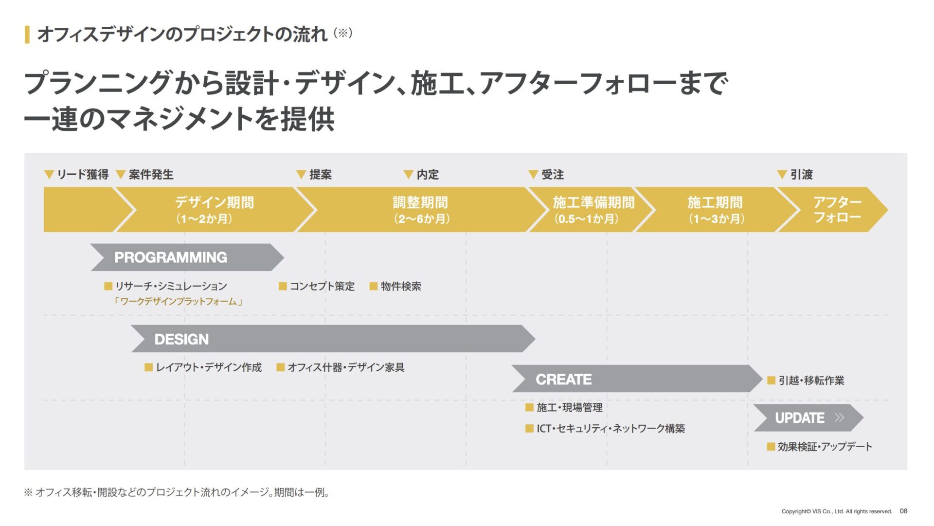 2004年にデザイナーズオフィス事業をスタートさせ、オフィスデザインをはじめ、ウェブやロゴ、パンフレットなどのビジュアル・アイデンティティの提案をワンストップで行っています。現在の事業はブランディング事業、 データソリューション事業 、プレイスソリューション事業 の3つです。主力事業はブランディング事業で、売り上げの約96%を占めています。
