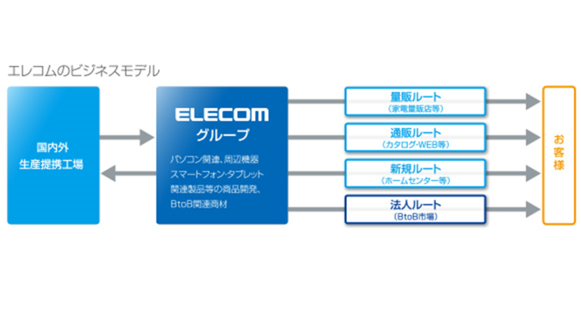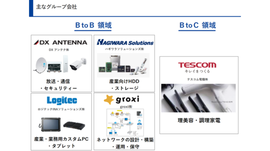 エレコムはBtoC市場だけでなく、BtoB市場での存在感も強めています。企業向けネットワーク設計や放送・通信・セキュリティ関連の機器販売やサービスなど、法人向けソリューションの拡充を図りつつ、買収や提携を通じてさらなる事業の強化を目指しています。