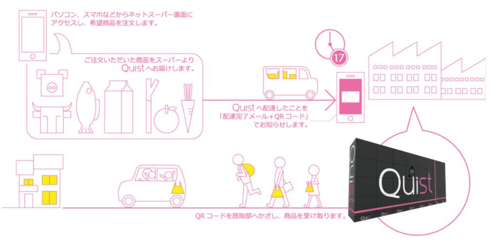 「Quist」は、ネットスーパーで注文した生鮮食料品、日用品を専用ボックスで受け取る新しい買い物スタイルです。