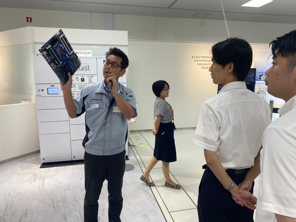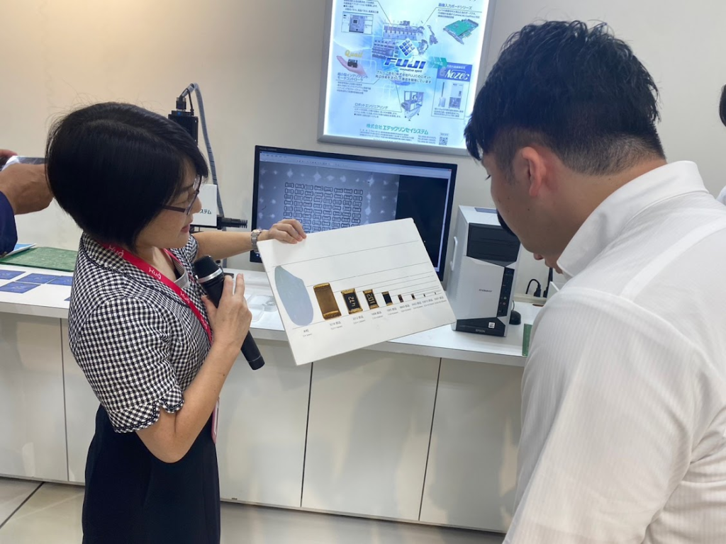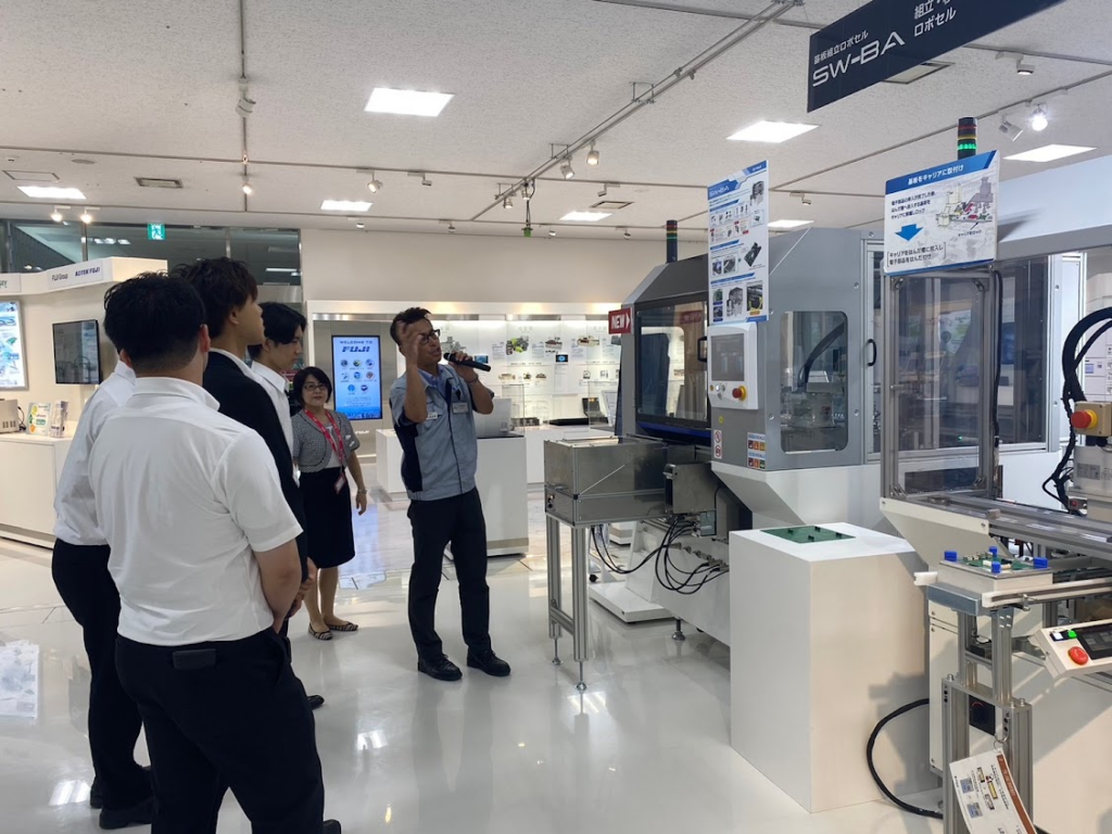 普段、私たちが使っている電子機器にはこれほどまでに細かく繊細な基板が入っていることに驚きました!ショールームにある機械は、どれもとても大きく迫力がすごかったです!大見様のおっしゃる通り、直接FUJIにお伺いし機械を見せていただかないとわからなかったことがたくさんありました!こうした機会を頂きありがとうございました!これからも発信を続けていきたいと思います!