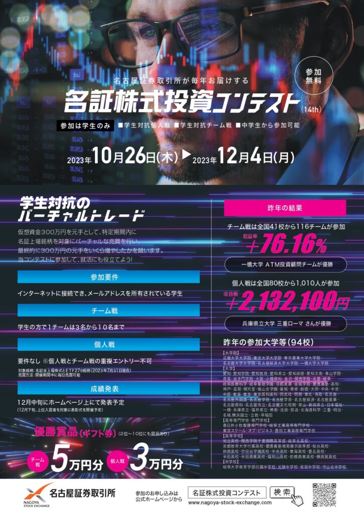 学生向けに名証株式投資コンテストを毎年開催しています!