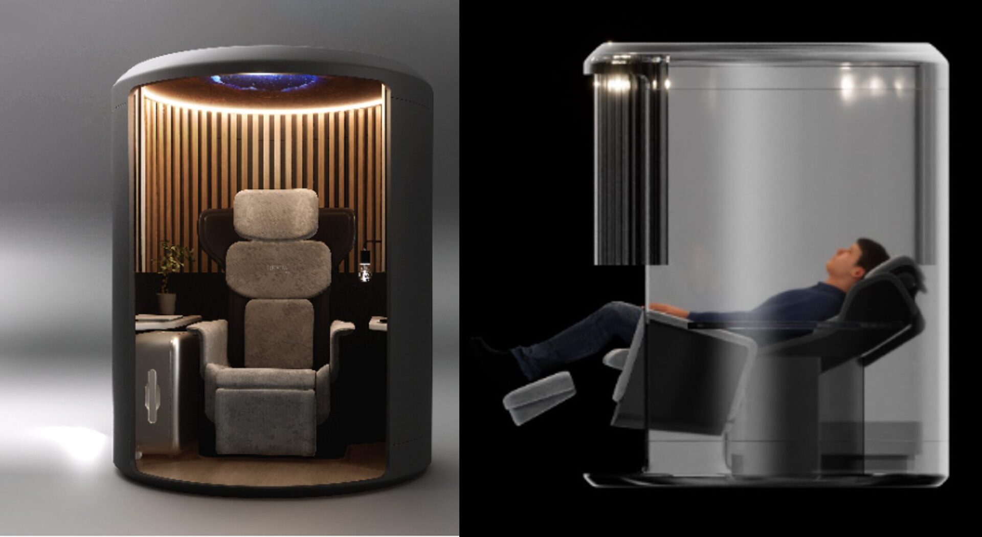 トヨタ紡織では、新事業の探究を常に行なっています。現在は、車両用のシート製造のノウハウを活かして旅客機のシートも製造しています!また、成田空港のビジネスラウンジに“QUALIA POD”(クオリアポッド)という、五感に訴えリラックスを促すリクライニングチェアを搭載したブースを設置し、忙しい利用者への休息の機会を提供しました!まだ実証段階の事業ではありますが、今後が期待される領域になっています。