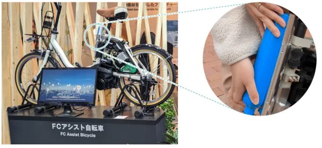 実はトヨタ紡織は、燃料電池の製造技術が優れており、その強みを活かして当社開発の小型水素発電システムを搭載したFCアシスト自転車を開発中です!水素自転車は、現在普及している充電式の電動自転車に対し、水素タンクを入れ替えるだけ!と素早く済みます。自治体との実証実験を予定しており、さまざまな乗り方でシステムへの負荷を検証しながら市場投入に向けて検討、また、観光プランと組み合わせた実証も検討しています。