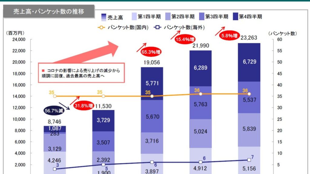 IKKホールディングスの業績好調の理由は、店舗展開の拡大収益構造の工夫にあります。コロナ禍で一時的に減少した結婚式の組数も、今年から再び増加し、新店舗が続々とオープン。地域密着型の店舗づくりでトップシェアを獲得し、安定した集客力を発揮しています。
