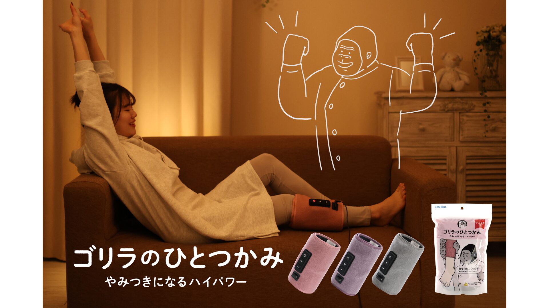 きちんとしたマッサージ器を買おうとすると、数万円かかってしまいます。そこで、圧着靴下のようなマッサージ器を作れば低価格で驚きを提供出来ると考えました。そして生まれたのが「ゴリラのひとつかみ」だったんです。