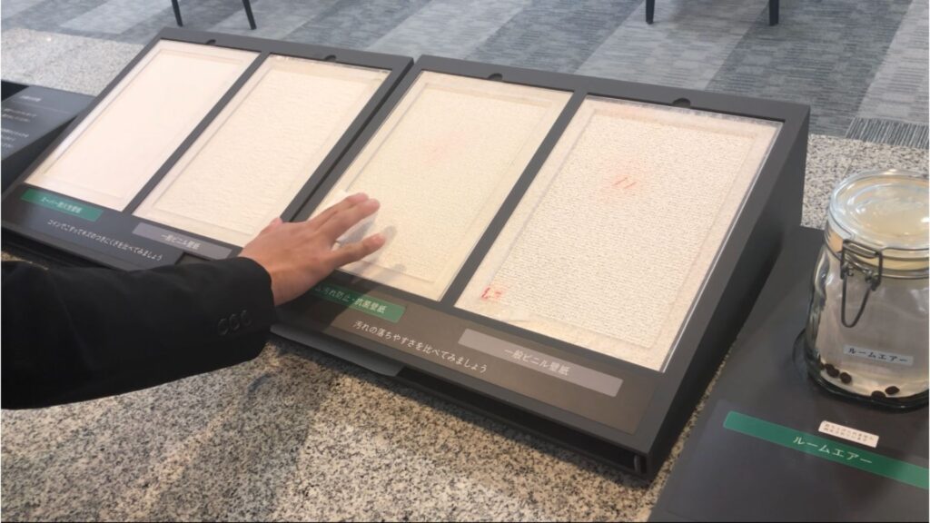 傷に強い壁紙や、汚れが簡単に落とせる壁紙。そして、消臭効果を持つ壁紙。ほかにもさまざまな機能を備えた商品を提供しています!