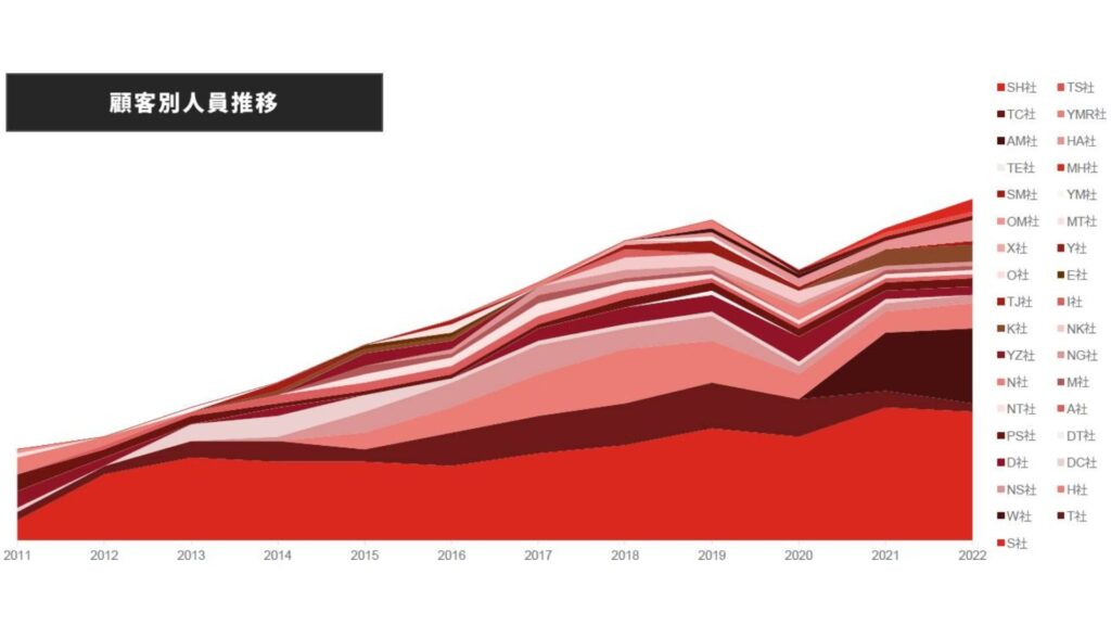 一つが完了してもまた次の支援へ、そのまた次へ、次の次の次の、、、と契約を更新してもらえるんです!実際にコンサルティング事業売上の約8割以上が継続の会社さんで、残りの1~2割は新規の会社さんになっているんだそうです。